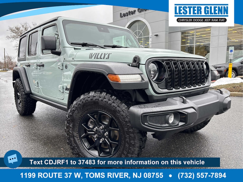 QUICK ORDER PACKAGE 24W WILLYS Engine: 3.6L V6 24V VVT UPG I w/ESS, Transmission: 8-Speed Automatic (850RE), Speed Sensitive Power Locks, 7 & 4 Pin Wiring Harness, Conventional Differential Front Axle, 4-Wheel Drive Swing Gate Decal, Black Grille, Injection Molded Black Rear Bumper, Dana M210 Wide HD Tube Front Axle, Front 1-Touch Down Power Windows, Daytime Running Lamps LED Accents, Front LED Fog Lamps, LED Premium Reflector Headlamps, E-Locker Rear Axle, Corning Gorilla Glass, Security Alarm, Willys, Class II Receiver Hitch, Mold In Color Bumper w/Gloss Black, Advanced Brake Assist, Automatic Headlamps, Off-Road Plus Mode, 240 Amp Alternator, Willys Hood Decal, Full Speed Forward Collision Warning Plus, Rock Protection Sill Rails, 97 MPH Vehicle Max Speed Calibration, Power Heated, TRANSMISSION: 8-SPEED AUTOMATIC (850RE) Adaptive Cruise Control w/Stop, Anti-Lock 4-Wheel Disc Brakes, Dana M200 Rear Axle, Selec-Speed Control, BLACK 3-PIECE HARD TOP Freedom Panel Storage Bag, Rear Window Defroster, Rear Window Wiper/Washer, No Soft Top, TECHNOLOGY GROUP 240 Amp Alternator, Alpine Premium Audio System, ENGINE: 3.6L V6 24V VVT UPG I W/ESS (STD). Jeep Willys with Earl Clearcoat exterior and Black interior features a V6 Cylinder Engine with 285 HP at 6400 RPM*.