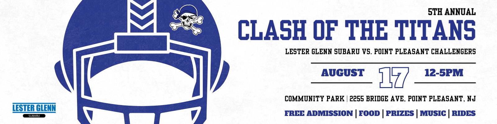 Join us on Sunday, August 17th as the Lester Glenn Subaru team takes on the Point Pleasant Challengers Flag Football team in a an epic Clash of the Titans to help raise awareness and fundraise for the Point Pleasant Challenger Program.