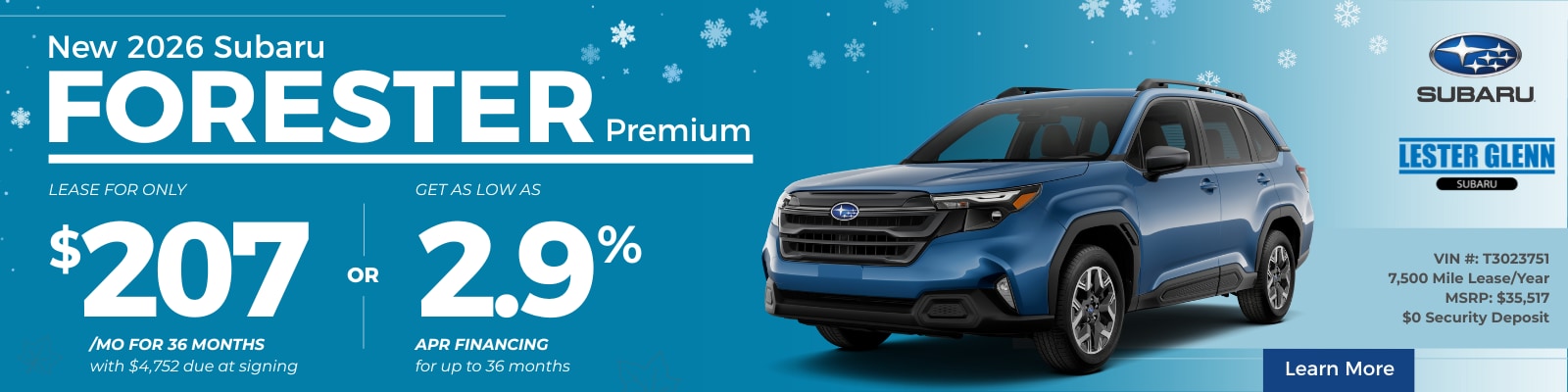 Lease a new 2026 Subaru Forester for $207/mo for 36 months with only 3,895 down!