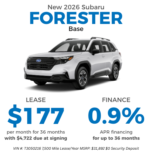 At Lester Glenn Subaru, we know that buying a new Subaru car can be expensive. That's why our Subaru dealership near Toms River, NJ offers a variety of specials to our customers. Our Subaru lease deals can help you take home a Subaru Forester or Subaru Outback for a great price and enable you to always drive one of the most modern vehicles on the market.